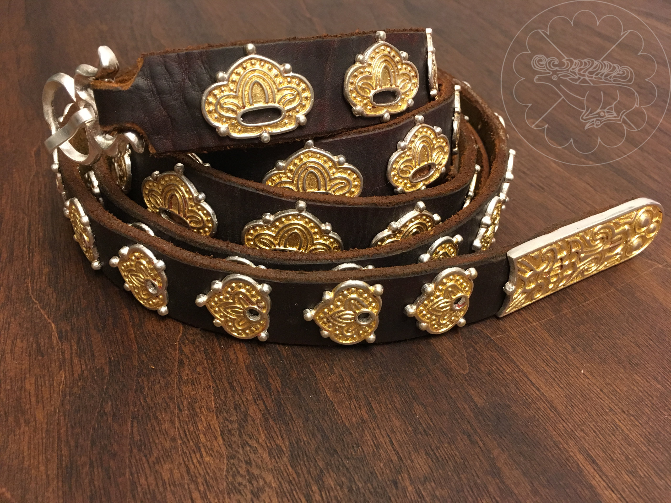 The belt fittings from Armor and Castings, silver plated and gilded with gold leaf (2017).