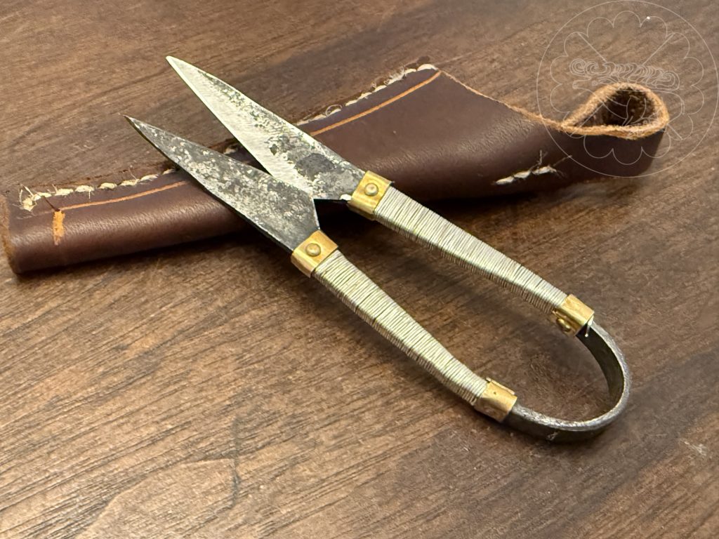 I purchased a pair of small iron shears and decorated them with brass and silver wire to add to my kit.