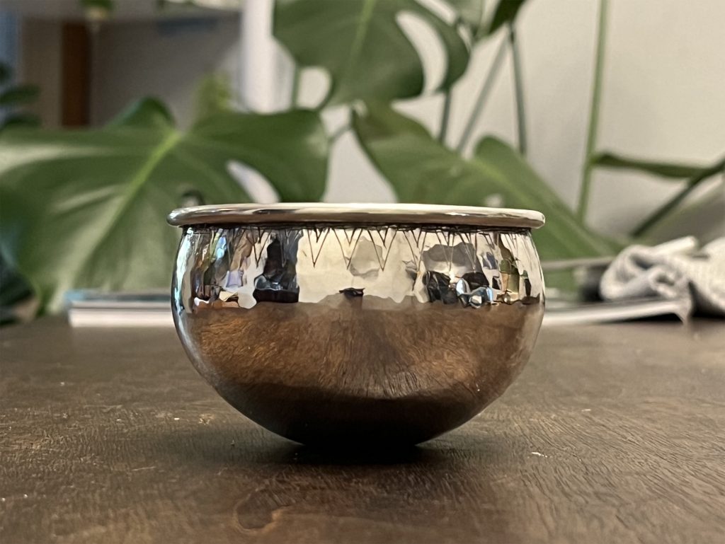 After visiting the National Museum of Denmark, I became interested in silver cups from the Viking age. One of the most famous viking age silver cups is a round bottomed cup from the Lejre hoard with cast details and gilding near the rim. I’ve seen several reproductions of this cup, and the original is shown