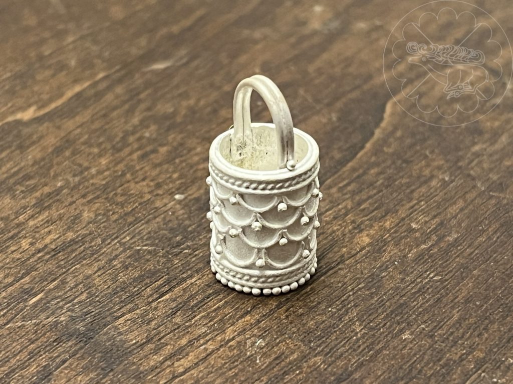 I ran across some objects on auction sites (worthpoint.com, invaluable.com, drouot.com & others) labelled variously as Viking Bucket Pendant, Scandinavian Pre-Viking Bucket Pendant, Anglo-Saxon / Viking Filigree Bucket Pendant, Pre-Viking Filigree Aroma Bucket Pendant, or Bucket Pendant from the Pagan Anglo-Saxon and Viking Times. There is a wide variety of different information regarding their time