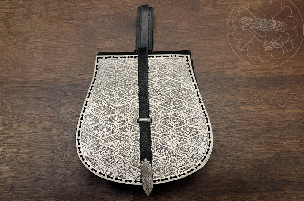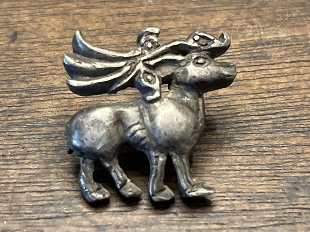 Another SCA peerage medallion, this one for the elevation in Drachenwald. The medallion design was inspired by a small number of disc-shaped pendants depicting animals. One example is a find with a two-headed bird from Gnezdovo shown below. I’ve found additional examples on auction sites and other unverifiable online sources of animal shapes depicting birds
