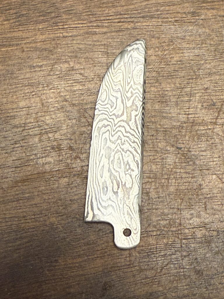 The damascus blade was forged by Eorl Mordygan MacGregor, and the pattern welding adds a distinctive contrast to the rest of the piece and is really visually stunning..