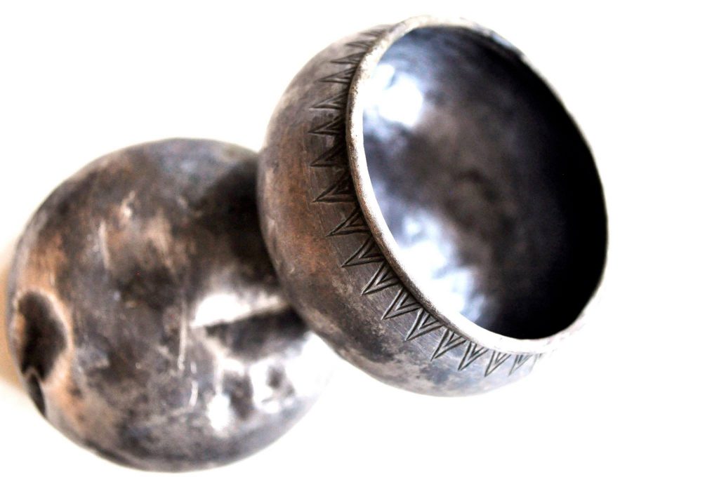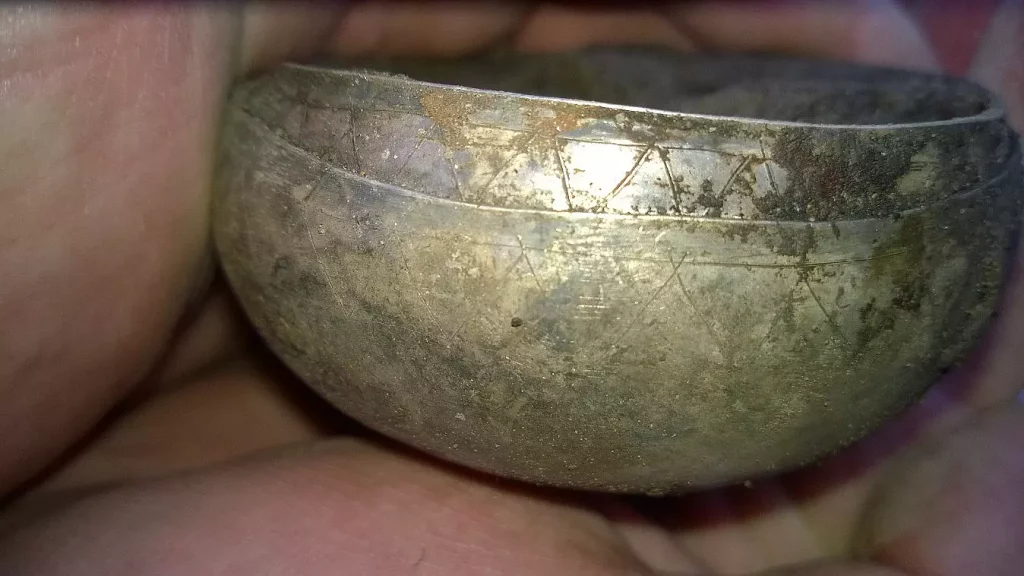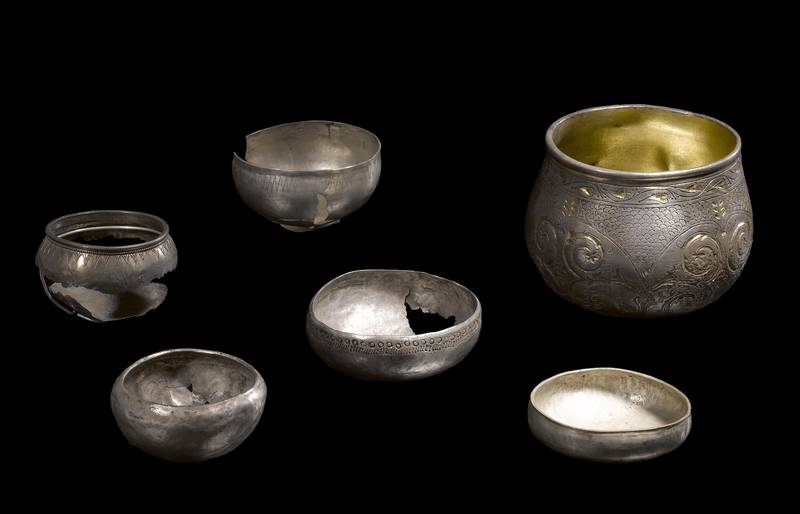 Simpler, as well as more ornate, cups made from silver have been found as well. The Fejø cup, found in 1872, features intricate engraved ornamentation, and had several smaller silver cups associated with it. The Fejø cup itself was found to be Frankish in origin from the 8th c., but the smaller cups are of Scandinavian origin from the 10th c.. It is believed that the cups may have been used as a set for liturgical or ritual purposes. Several of the smaller cups, more of which have been found as recently as 2016, have engraving near the lip in a triangular pattern. One of the most surprising things in seeing all of the cups is how small they were.