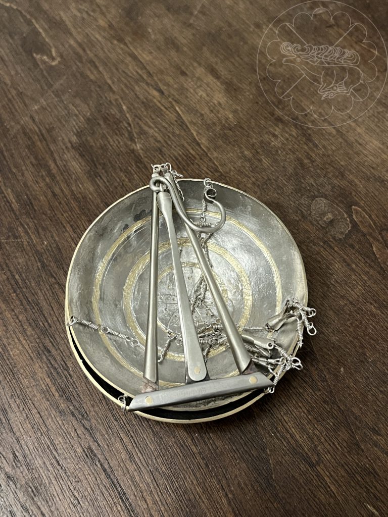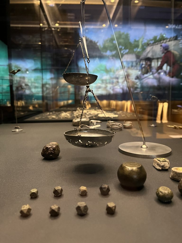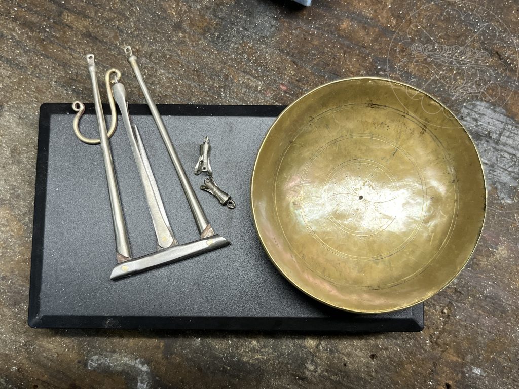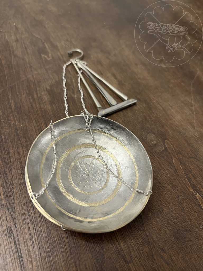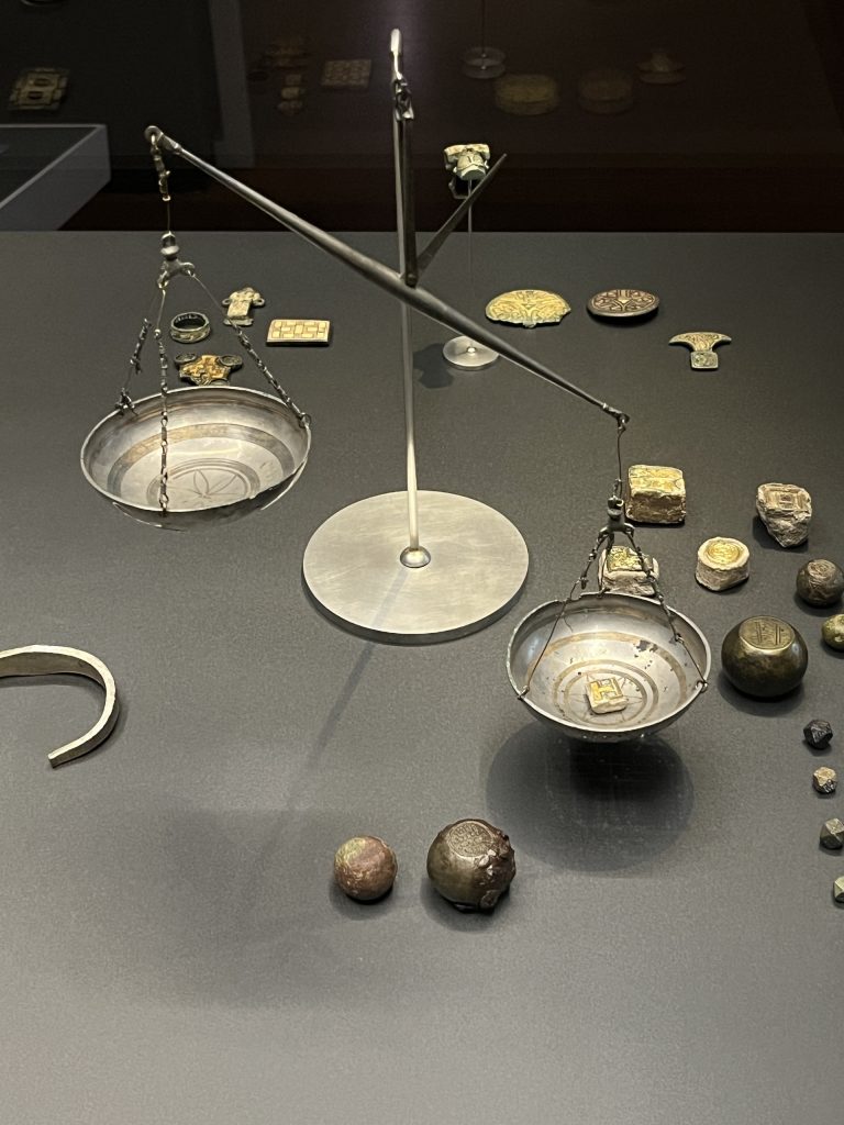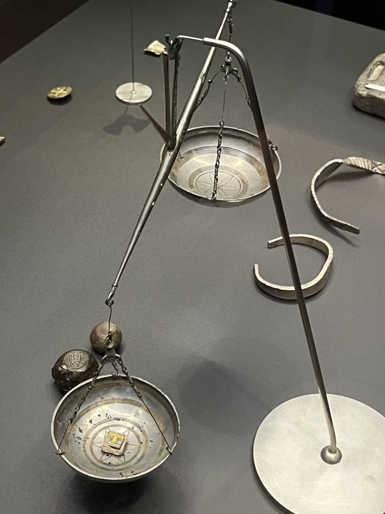 Additionally, in March of 2023 I was fortunate enough to also stumble upon a third scale set with similar decoration on the bowls during a visit to Copenhagen after I had decided that I wanted to make something like these. In the National Museum of Denmark’s viking exhibit, I found this set, with very similar bowls, but the balance itself did not appear to fold like the other designs.