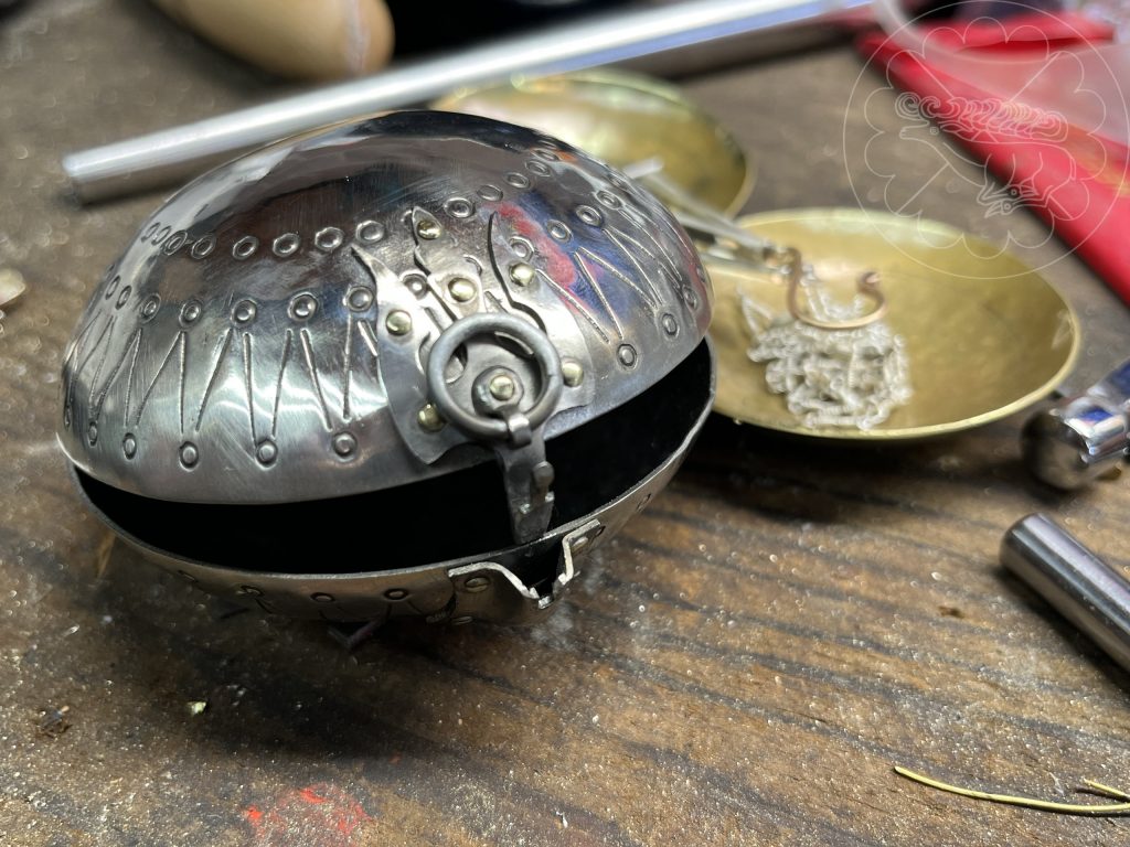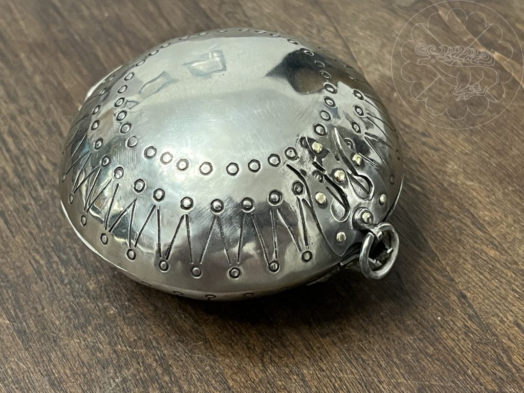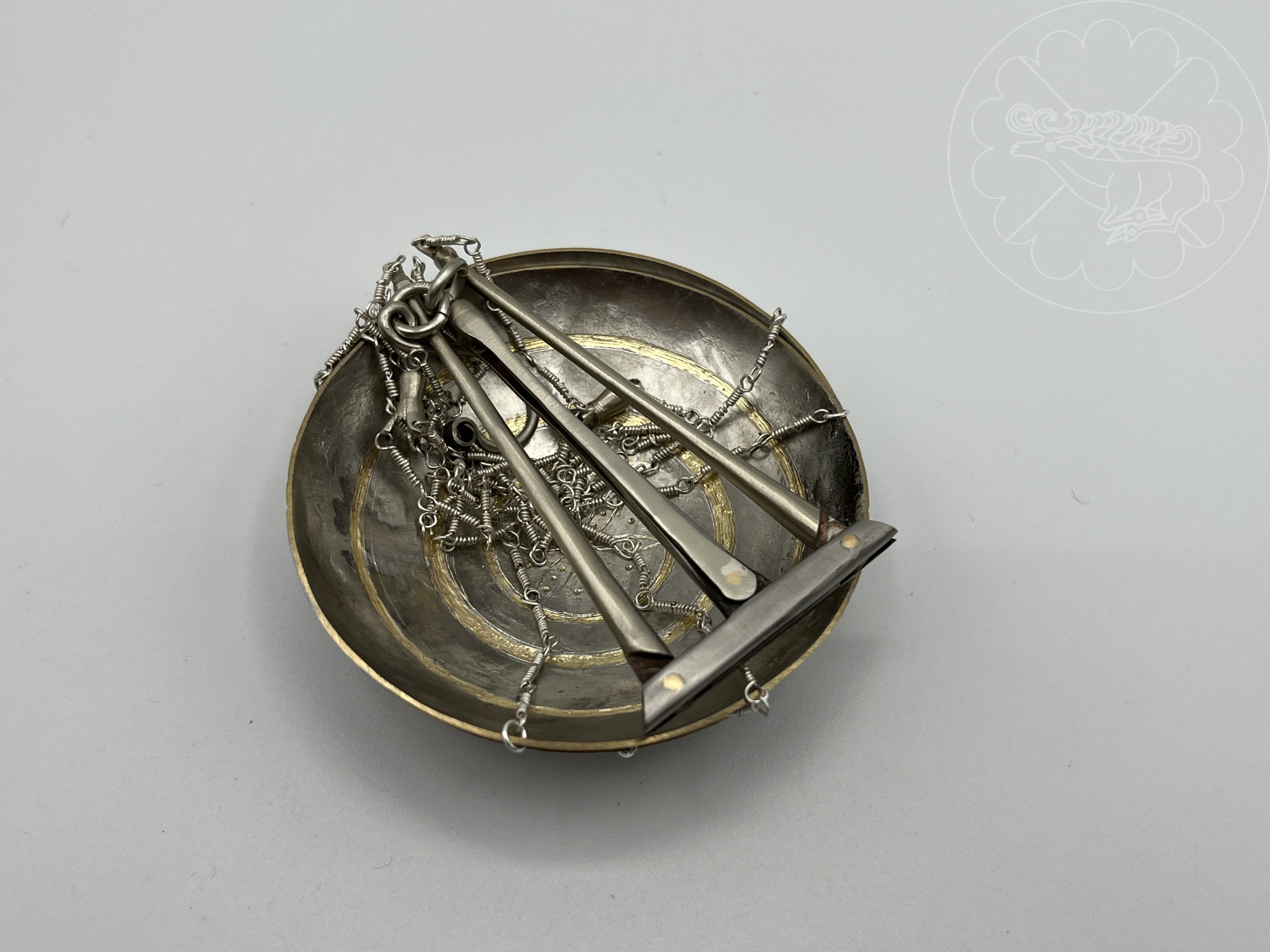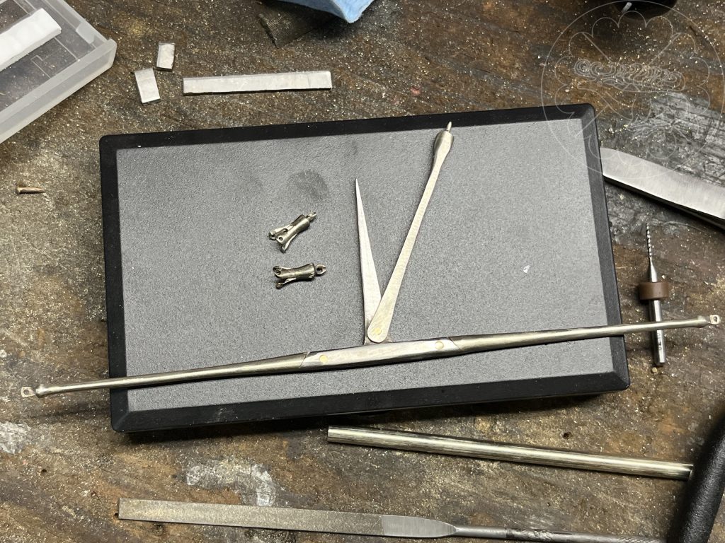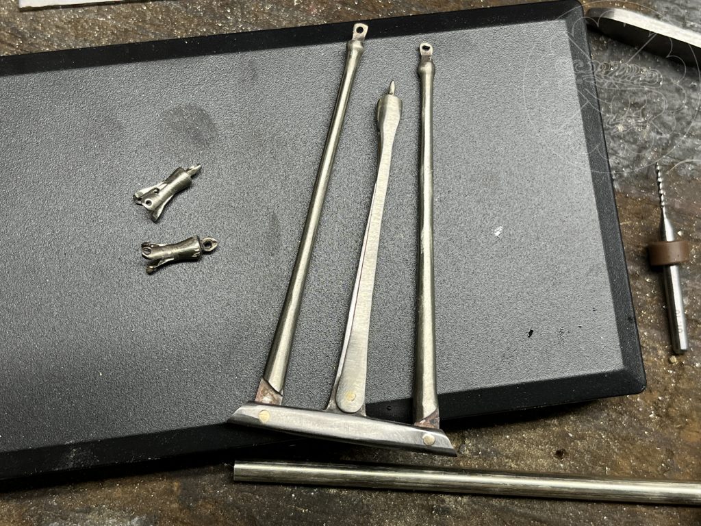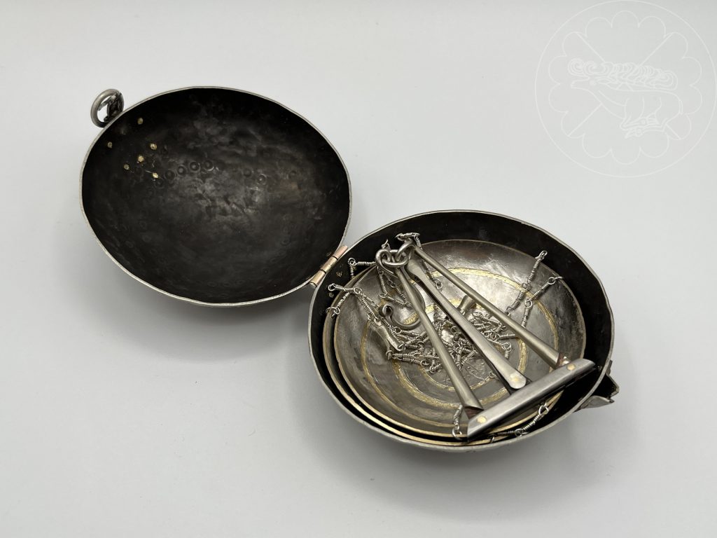 Although none of the extant scales had cases associated with them that I found, I did want to make one to protect them and allow them to be carried easily. The case I made is also from nickel silver with some details, particularly the clasp, inspired by this case found in Gotland.